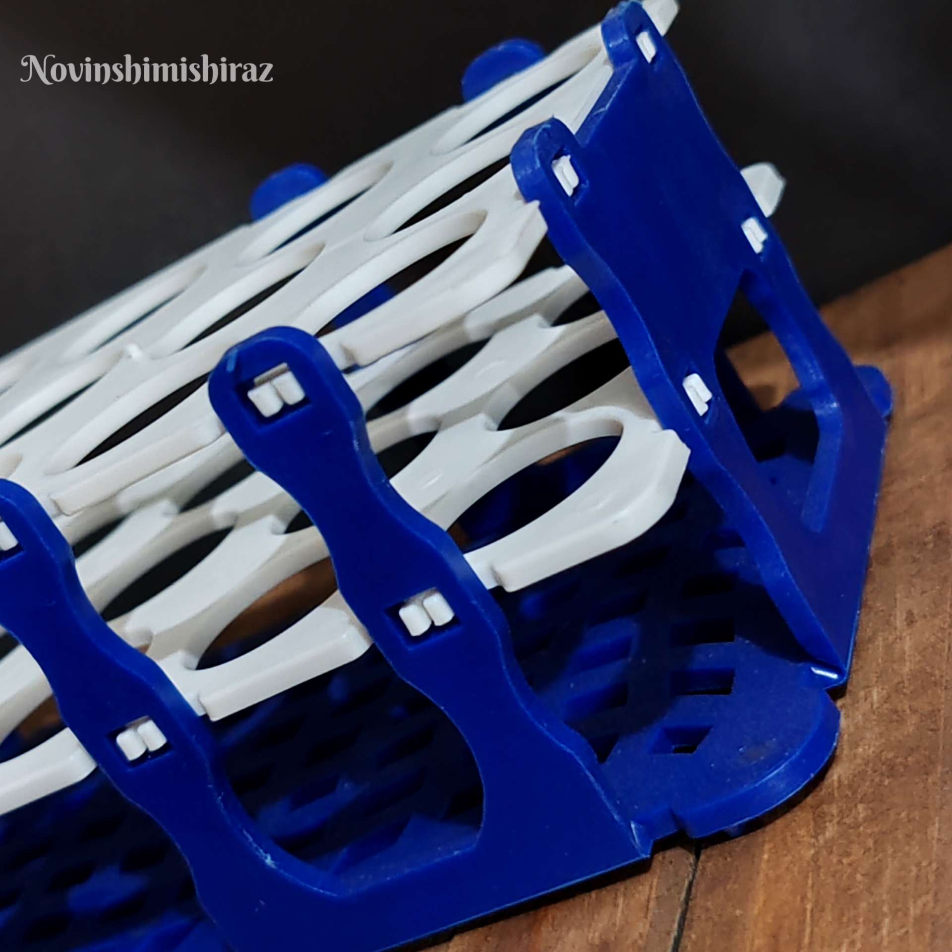 این راکها معمولاً از پلیپروپیلن (Polypropylene) یا پلاستیکهای آزمایشگاهی مقاوم ساخته میشوند که در برابر اثرات شیمیایی بسیاری از محلولهای رایج آزمایشگاهی نسبتاً پایدار هستند. جنس پلاستیکی باعث میشود وزن دستگاه سبک، شستشو و ضدعفونی آسان و اگر طراحی مناسبی داشته باشد، قابل اتوکلاو کردن یا استریل شدن باشد (بسته به کیفیت مواد).